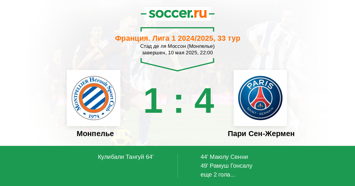 Запасные: 43 Камара Нохам (с 60'), 42 Заге Йорам (с 68'), 7 Кварацхелия Хвича, 34 Слама Вассим, 44 Нджанту Квентин, 39 Сафонов Матвей, 87 Невеш Жоау