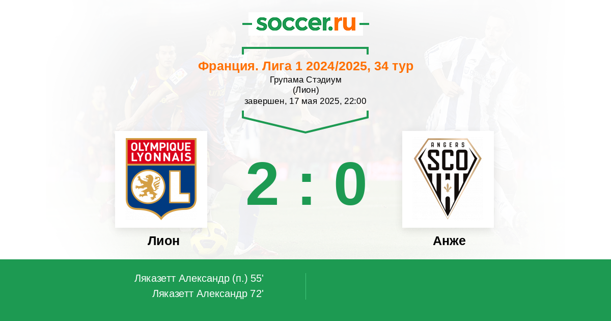 55' (1:0) Ляказетт Александр (10)