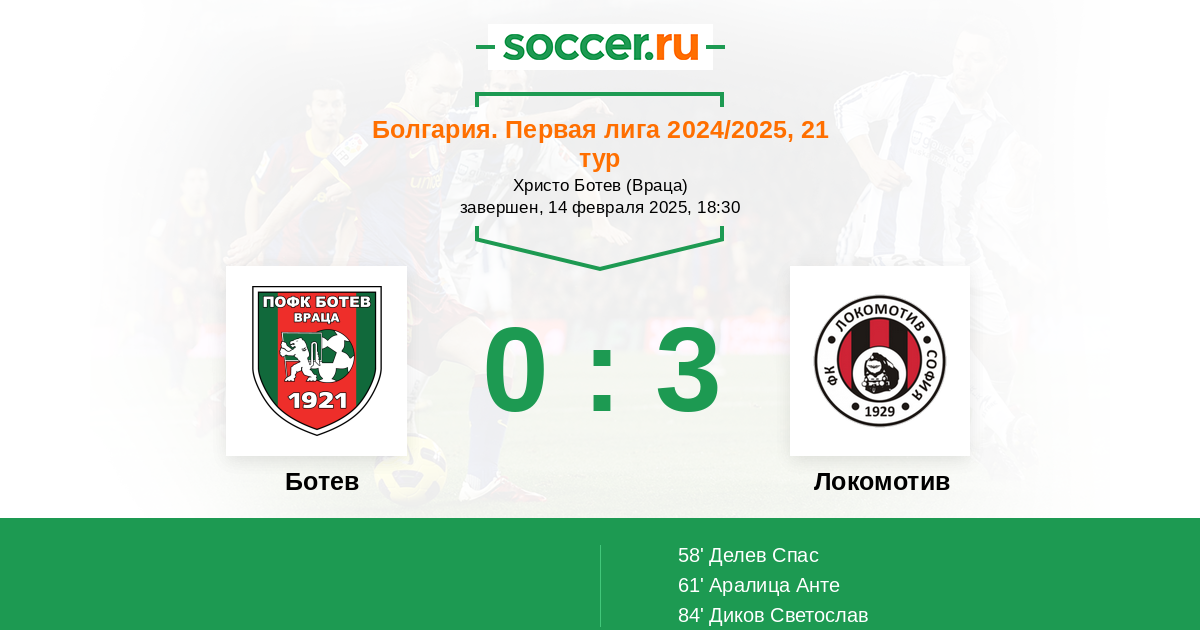 61' (0:2) Аралица Анте (29) (Делев Спас (7))