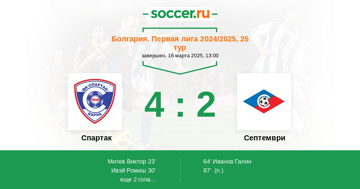 23' (1:0) Митев Виктор (11) (Ивэй Ромиш (14))