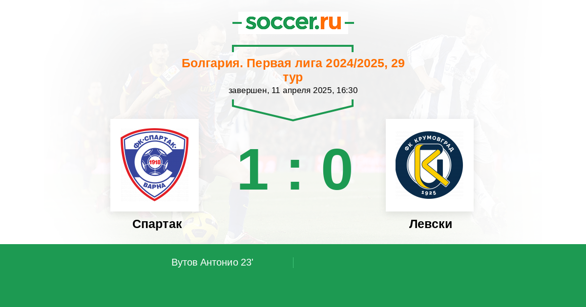 23' (1:0) Вутов Антонио (39)
