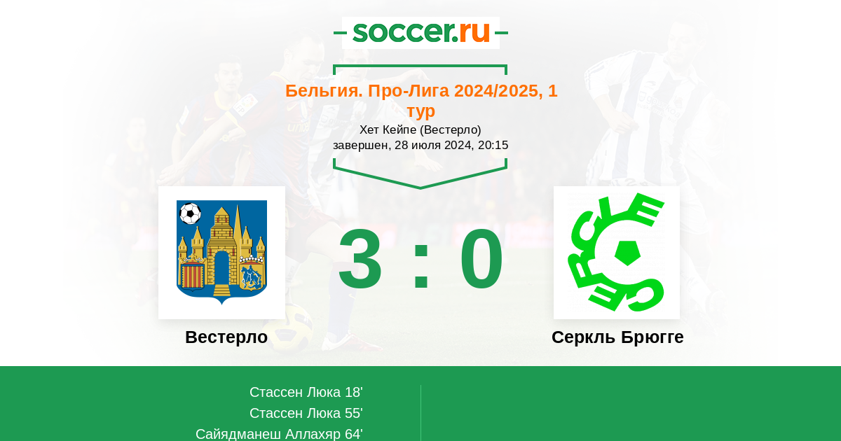 64' (3:0) Сайядманеш Аллахяр (7) (Стассен Люка (76))