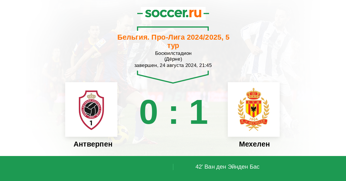 42' (0:1) Ван ден Эйнден Бас (29) (Пфлюке Патрик (77))