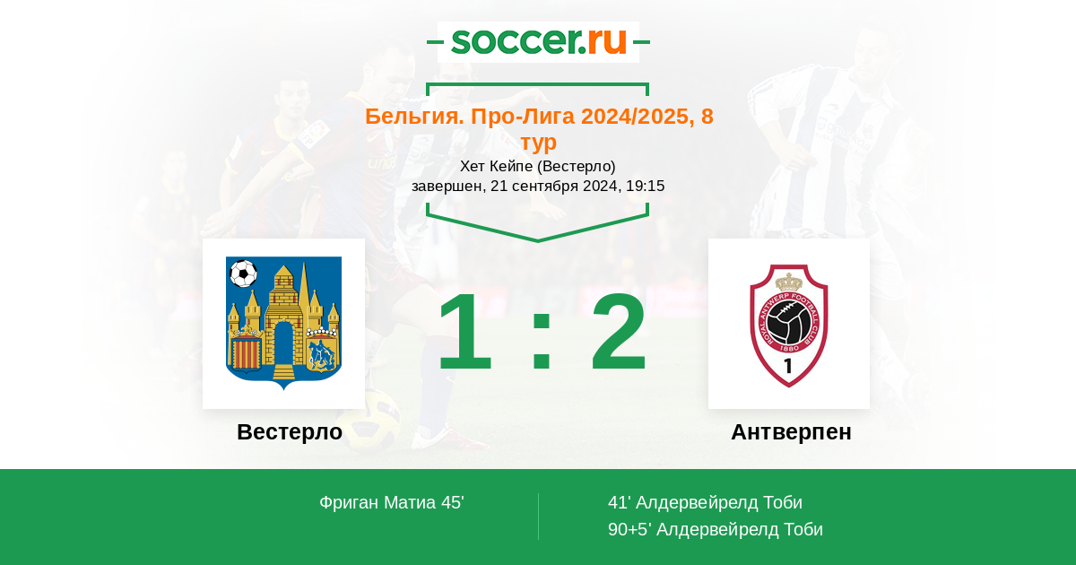 41' (0:1) Алдервейрелд Тоби (23) (Ондрейка Якоб (11))