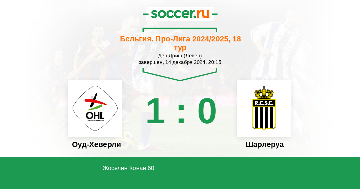 60' (1:0) Жоселин Конан (11) (Верстрат Биргер (4))