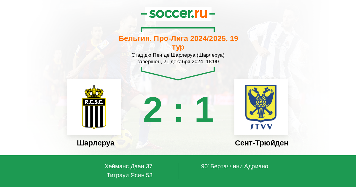 37' (1:0) Хейманс Даан (18) (Адем Зоргане (6))