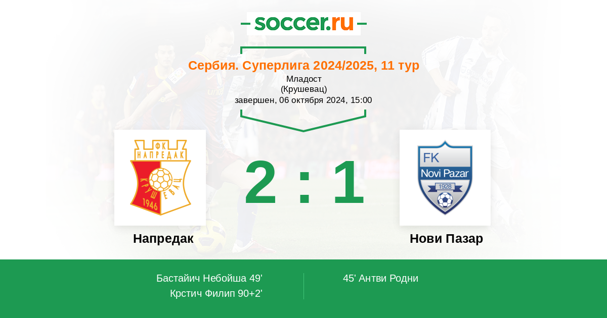 49' (1:1) Бастайич Небойша (12)