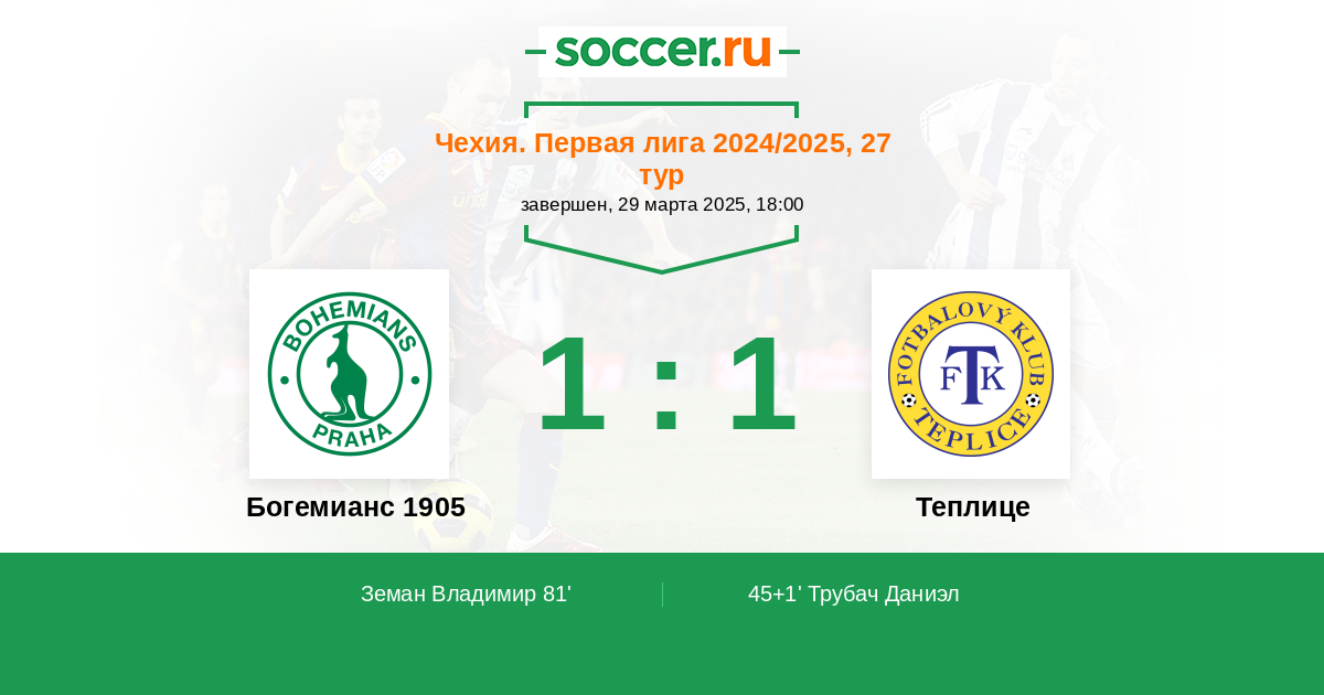 81' (1:1) Земан Владимир (13) (Дрчал Вацлав (20))