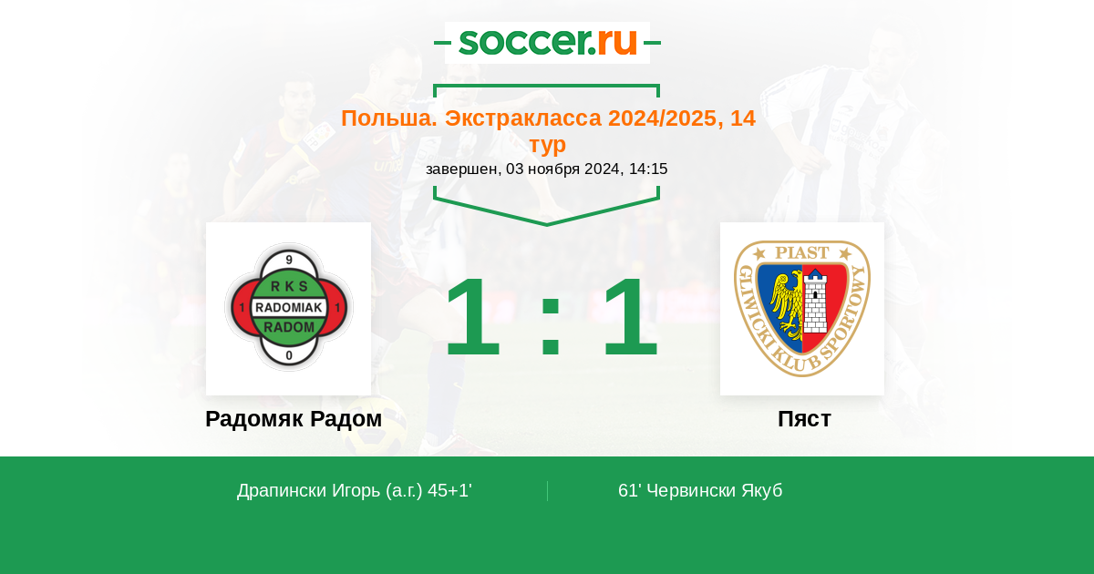 61' (1:1) Червински Якуб (4)