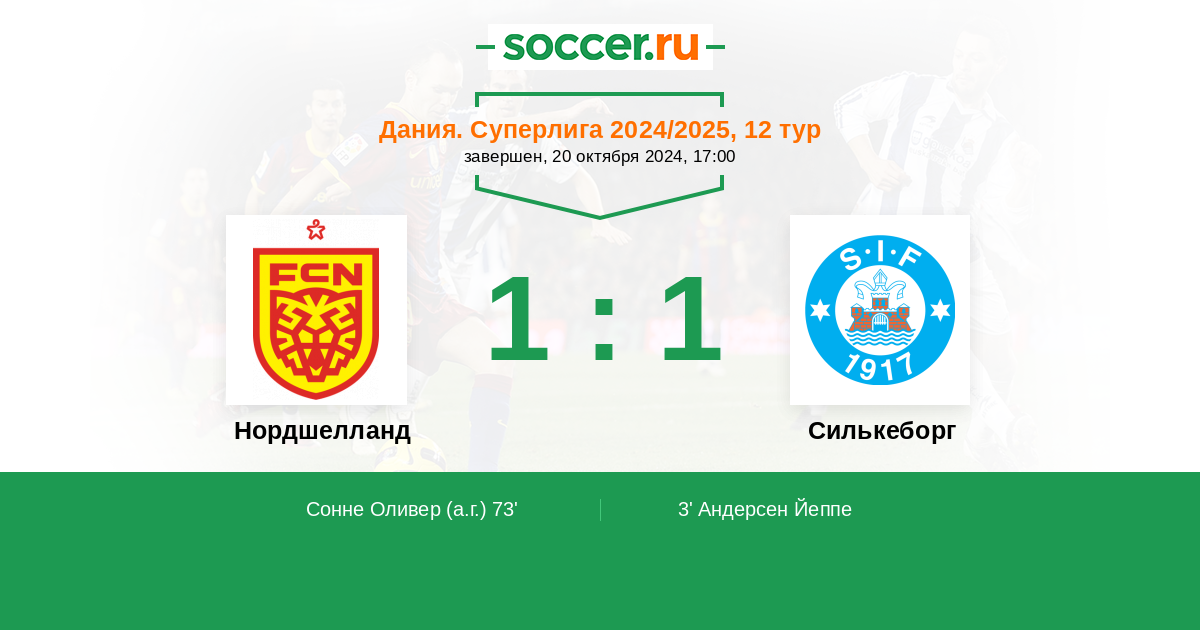 73' (1:1) Автогол Сонне Оливер (5)