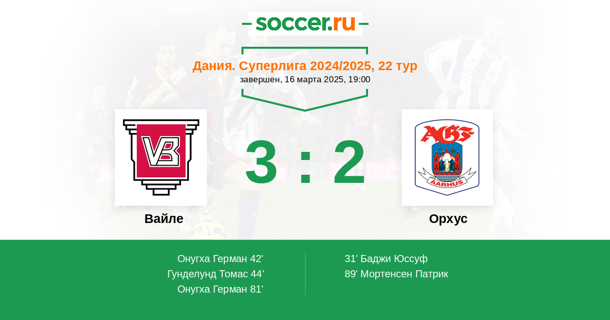 42' (1:1) Онугха Герман (45) (Гаммелгард Кристиан (37))