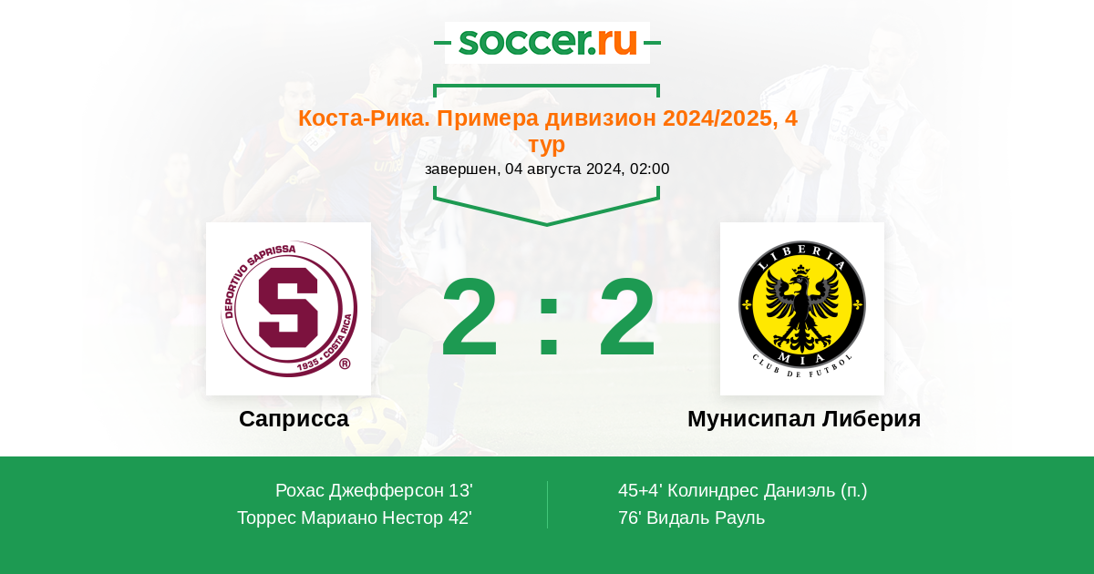 45+4' (2:1) Колиндрес Даниэль