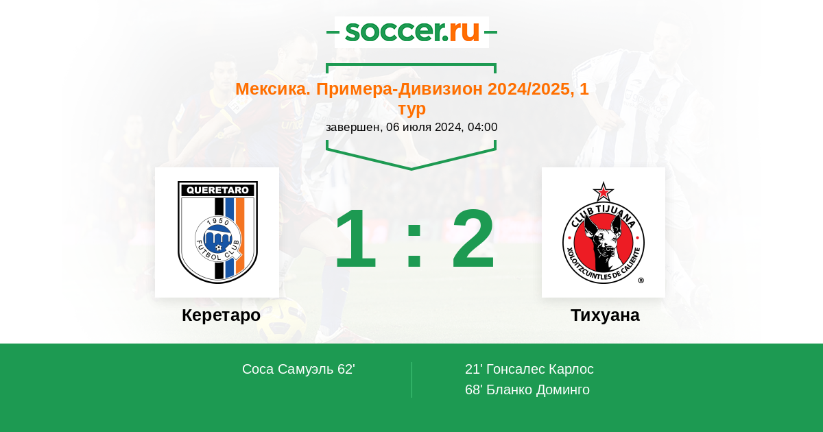 21' (0:1) Гонсалес Карлос (32)