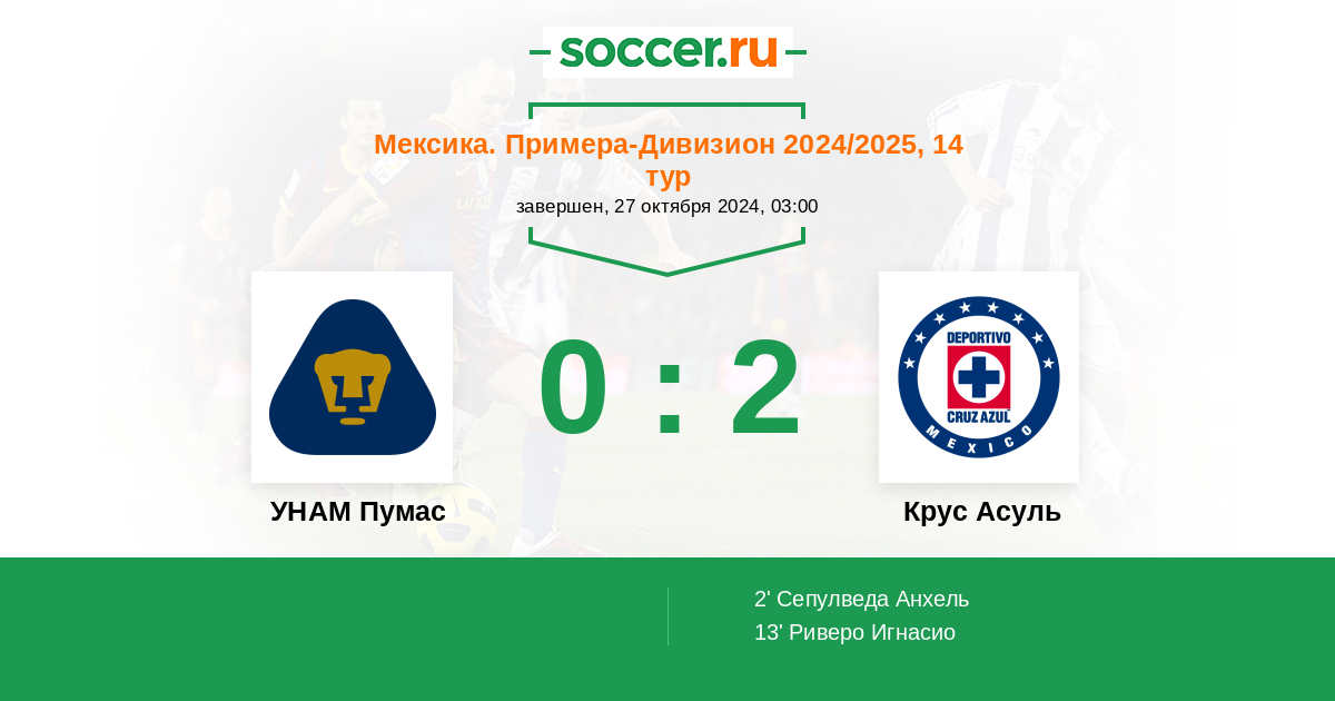 2' (0:1) Сепулведа Анхель (9) (Ротонди Карлос (29))