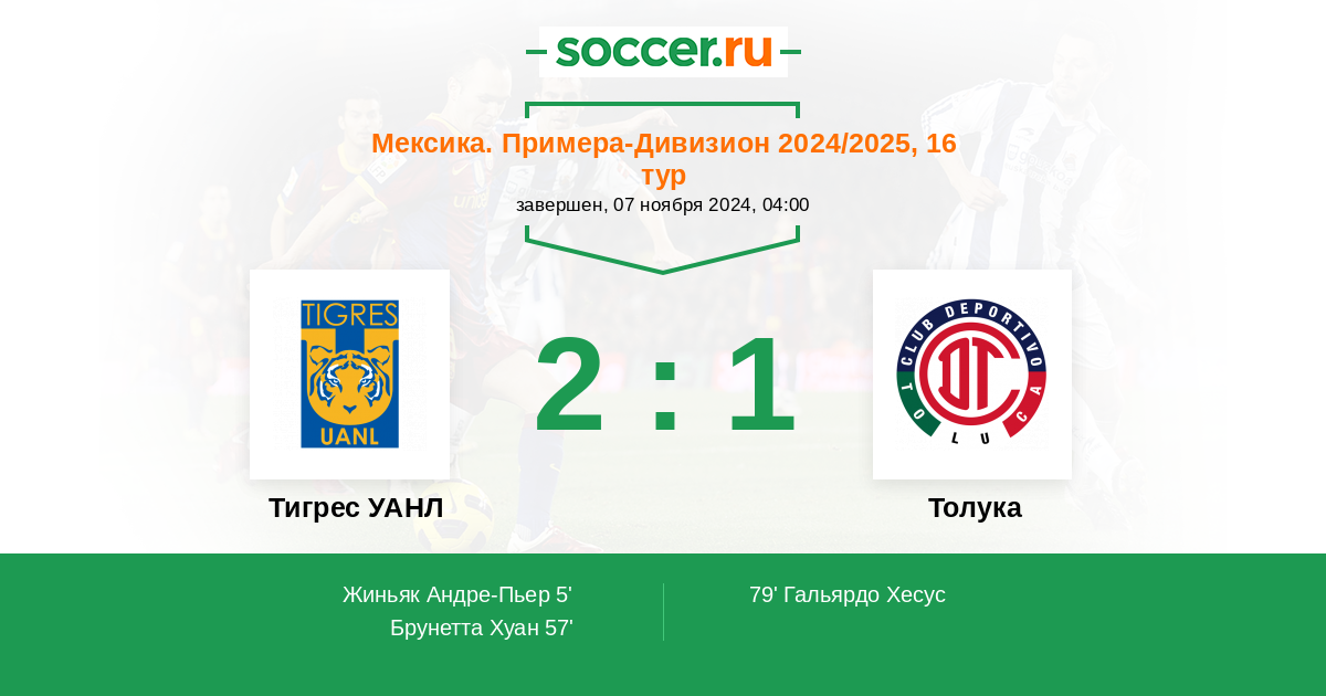 79' (2:1) Гальярдо Хесус (20) (Вега Эрнесто (25))