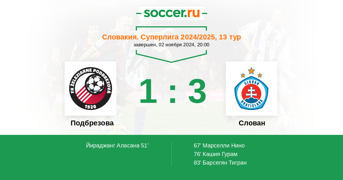 Запасные: 8 Демль Ондржей (с 68'), 22 Депетрис Давид (с 81'), 17 Юритка Петер (с 81'), 6 Лайчак Алекс (с 87'), 21 Маследж Самуэль (с 87'), 91 Байза Павол, 5 Мрва Марио, 19 Талаков Мартин, 77 Селиман Кайоде
