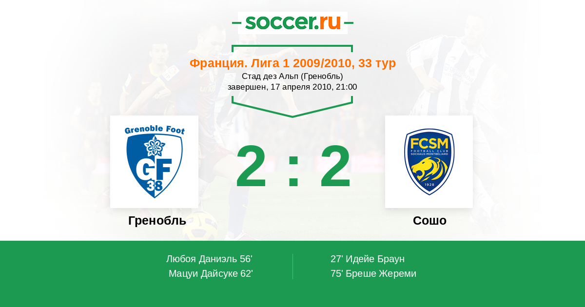 75' (2:2) Бреше Жереми (13) (Гаванон Бенжамен (19))