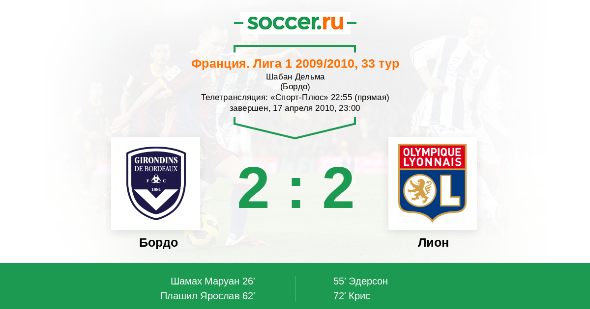 62' (2:1) Плашил Ярослав (18) (Жуссие (10))