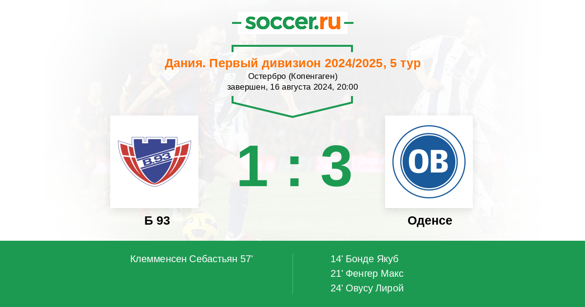 Запасные: 10 Дедсон Луисиус (с 66'), 14 Мадсен Густав (с 66'), 5 Иванчевич Михайло (с 77'), 7 Трибулл Том (с 77'), 40 Мартин Уильям (с 90+3'), 19 Сельвен Йоханнес, 1 Хансен Мартин, 15 МакКой Маркус, 26 Хансборг-Сёренсен Элиас