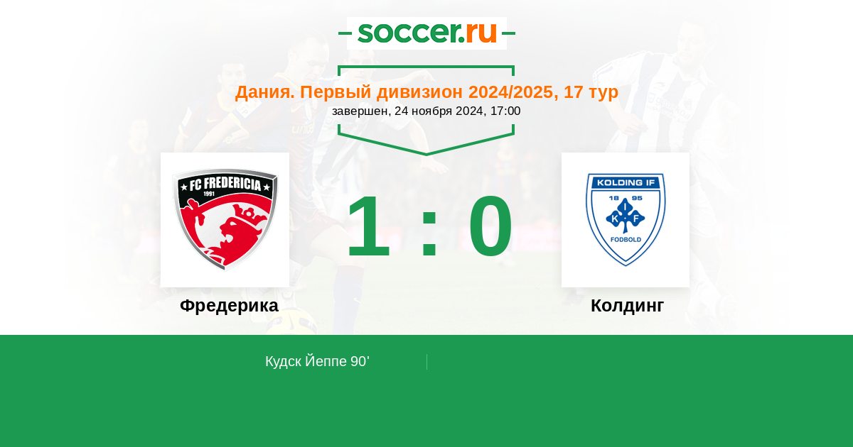 Запасные: 11 Опондо Мосес (с 59'), 19 Далль Эскильд (с 65'), 18 Йеспер Кристенсен (с 81'), 20 Харбо Даниэль (с 81'), 3 Андерсен Адам, 1 Ламхауге Маттиас, 2 Тогерсен Даниэль