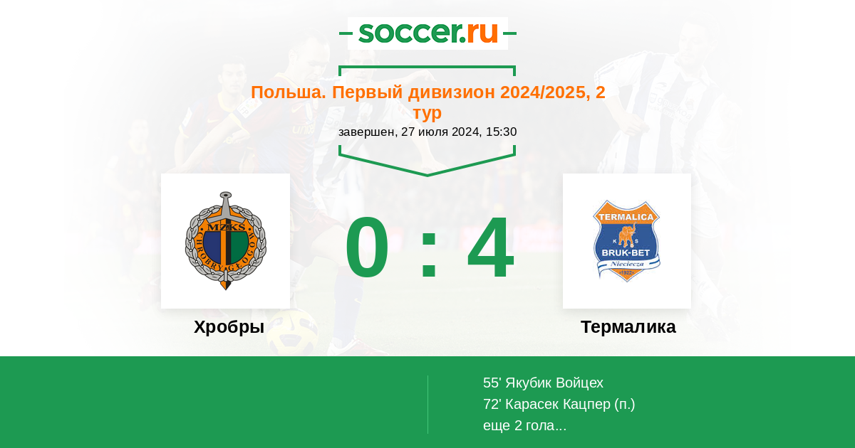 55' (0:1) Якубик Войцех