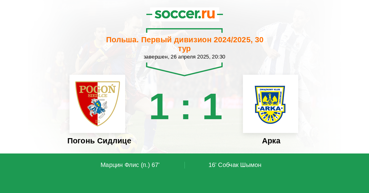 67' (1:1) Марцин Флис