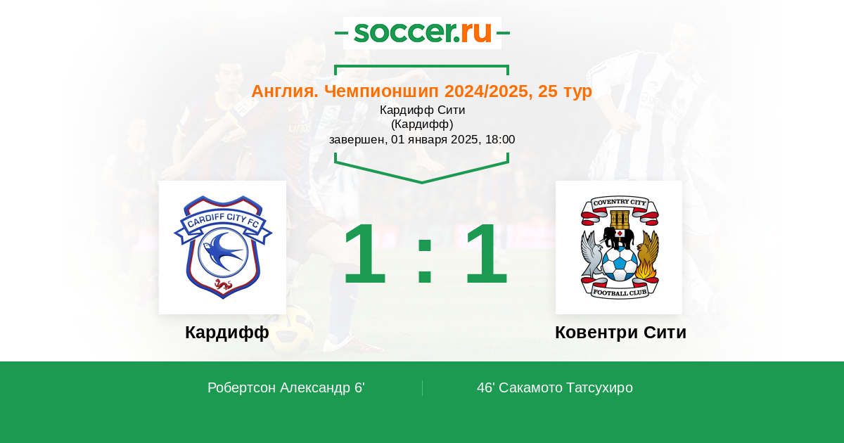 6' (1:0) Робертсон Александр (18) (Эшфорд Циан (45))