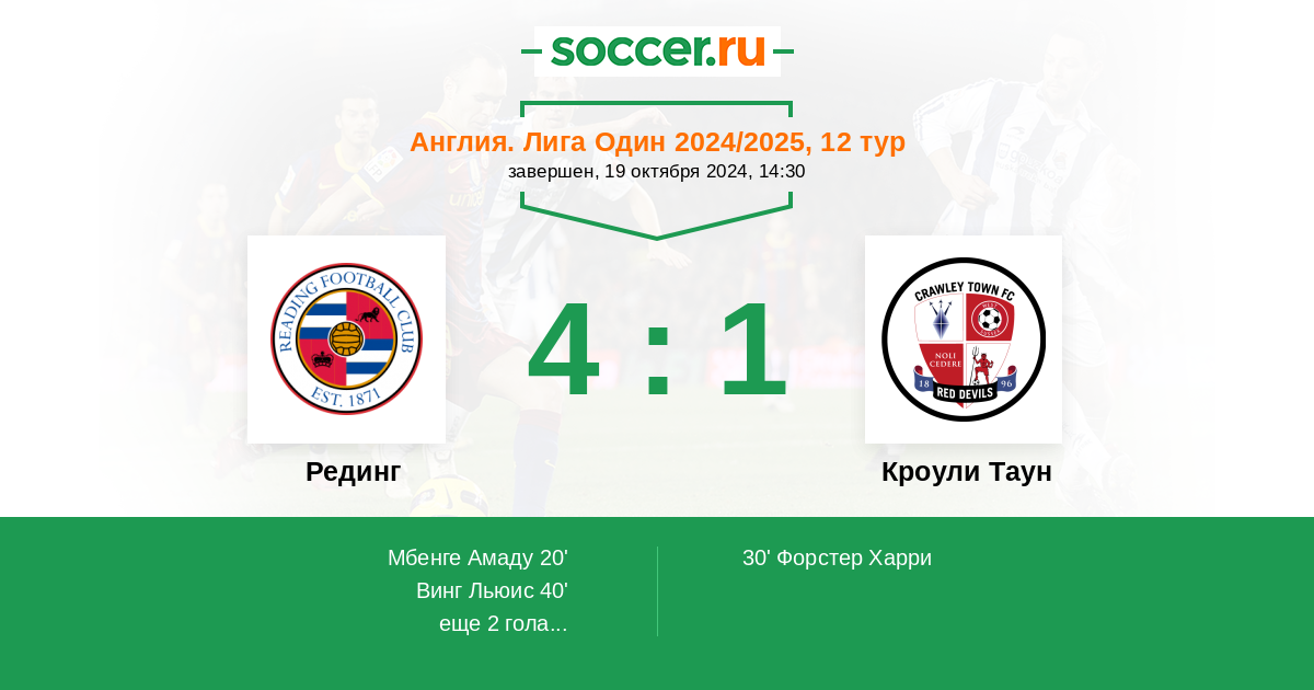 73' (4:1) Смит Сэм (10) (Винг Льюис (29))