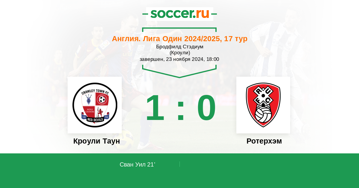 21' (1:0) Сван Уил (9) (Малларки Тоби (24))