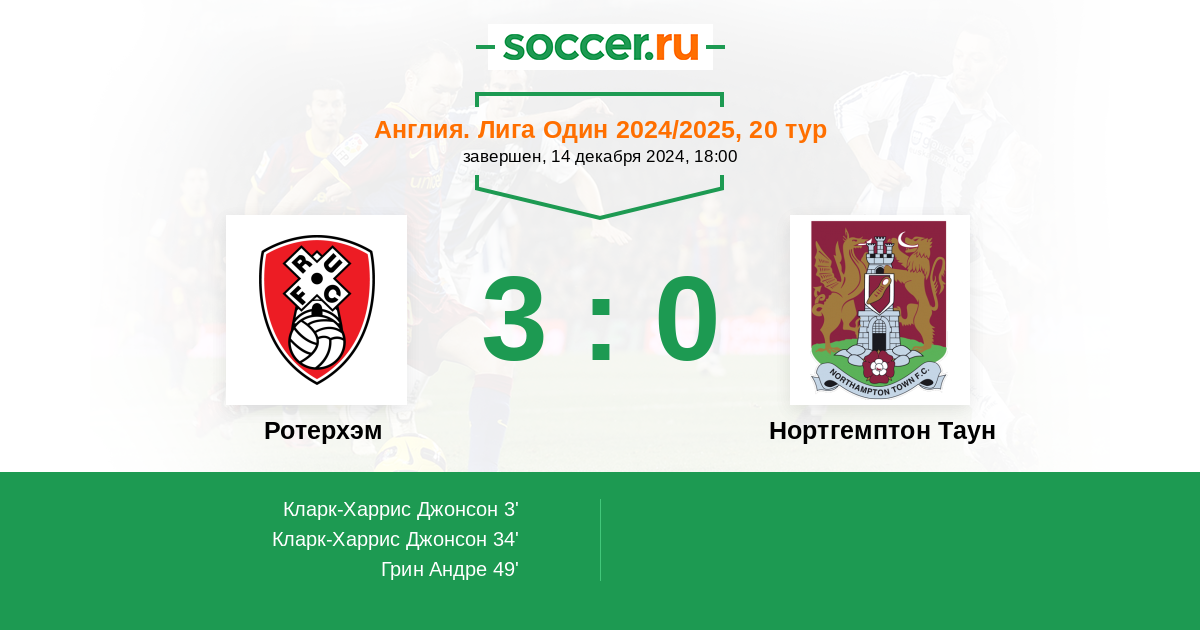34' (2:0) Кларк-Харрис Джонсон (9) (Грин Андре (11))