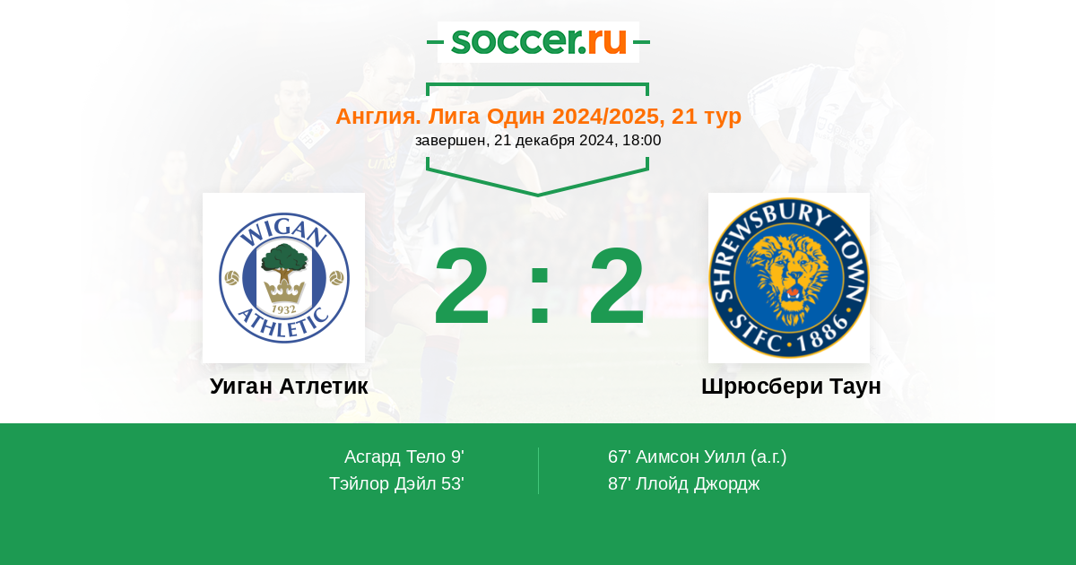 67' (2:1) Автогол Аимсон Уилл (4)