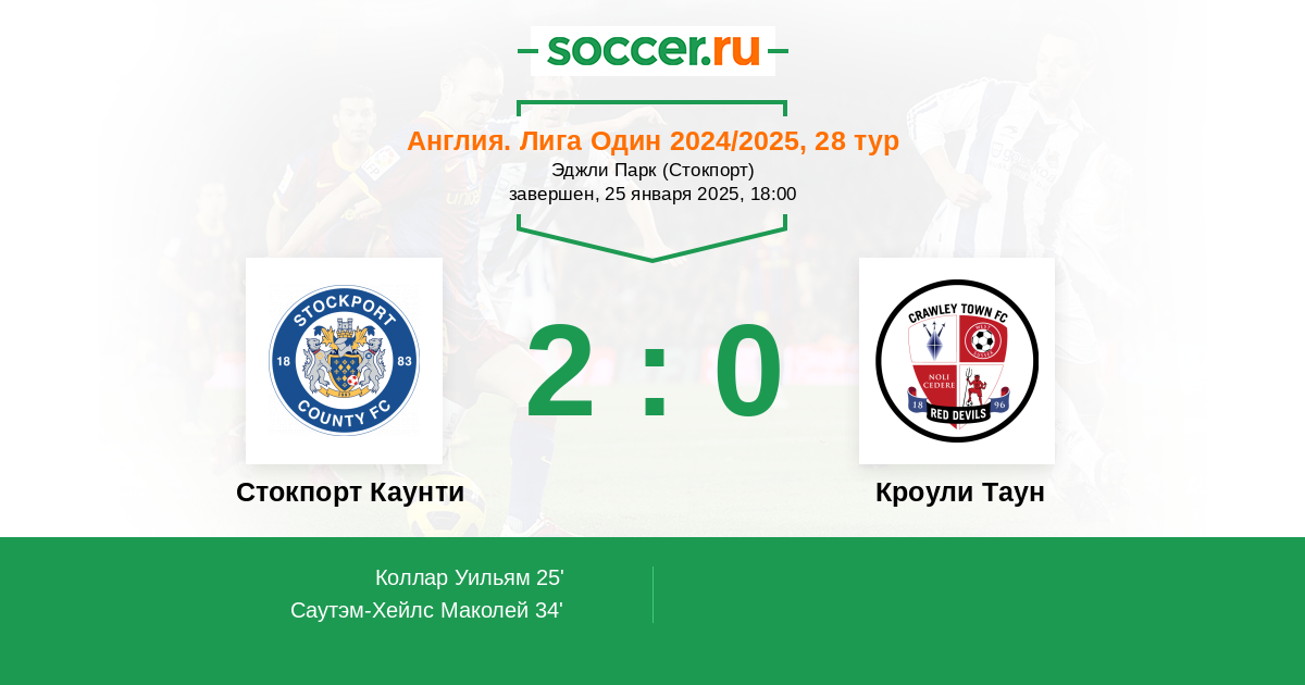 25' (1:0) Коллар Уильям (14) (Кнойл Кайл (2))