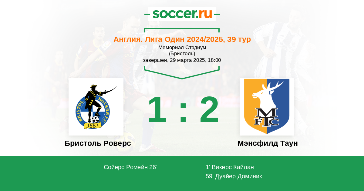 1' (0:1) Викерс Кайлан (30) (Эванс Уилл (11))