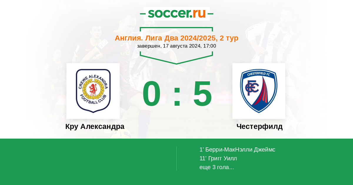 11' (0:2) Григг Уилл (9) (Нэйлор Том (4))