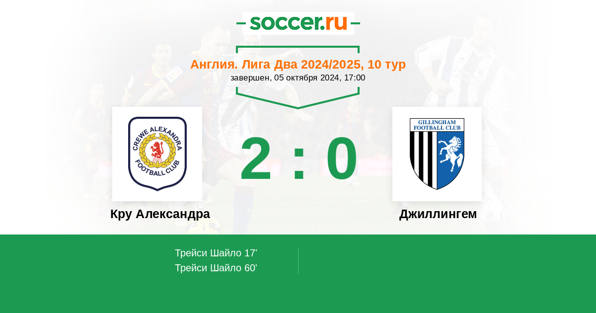 17' (1:0) Трейси Шайло (10) (Ланкестер Джек (14))