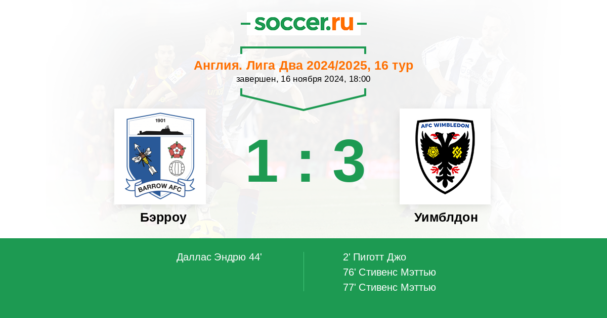 76' (1:2) Стивенс Мэттью (14) (Пиготт Джо (39))