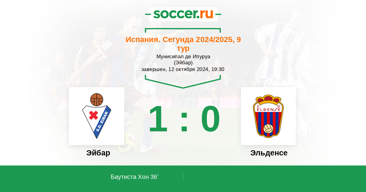 36' (1:0) Баутиста Хон (9) (Перейра Матеус (10))