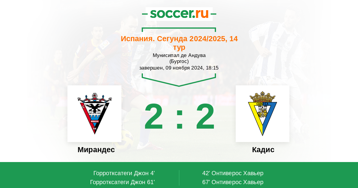67' (2:2) Онтиверос Хавьер (22) (Окампо Бриан (10))