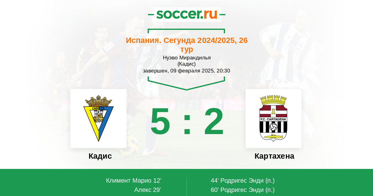 44' (3:1) Родригес Энди (17)