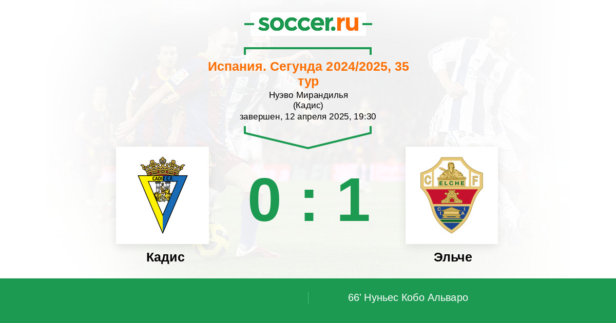 66' (0:1) Нуньес Кобо Альваро (15) (Карабинайте Херман (20))
