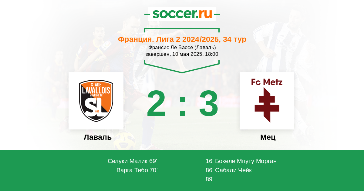 70' (2:1) Варга Тибо (7) (Коколо Уильямс (17))