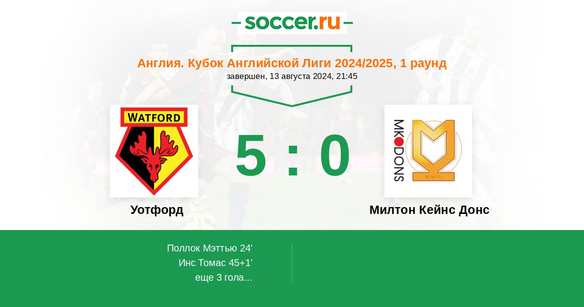 24' (1:0) Поллок Мэттью (6) (Инс Томас (7))