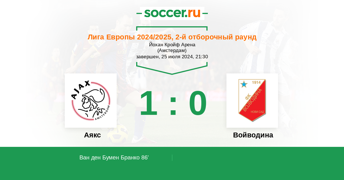 Запасные: 23 Бергейс Стевен (с 62'), 39 Годс Мика (с 62'), 21 Ван ден Бумен Бранко (с 74'), 19 Рикхофф Юлиан (с 74'), 49 Банель Джейдон (с 84'), 51 Сетфорд Чарли, 40 Диант Рамай, 3 Гааеи Антон, 18 Медич Яков, 36 Янсе Дис, 33 Тахирович Бенжамин, 38 Глинссон Кристиан