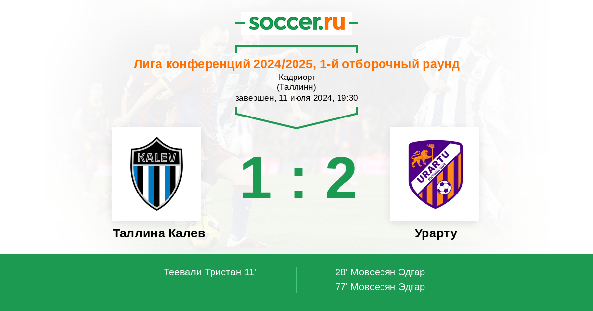 Запасные: 37 Шевяков Даниил (с 46'), 8 Синилаид Сандер (с 62'), 7 Ковальчук Арсений (с 72'), 66 Каджари Энрико (с 72'), 4 Лаур Каспар (с 90'), 30 Пыдер Джозеф, 89 Ликер Сандер, 1 Панк Георг, 9 Сутари Онни, 19 Томберг Мартин