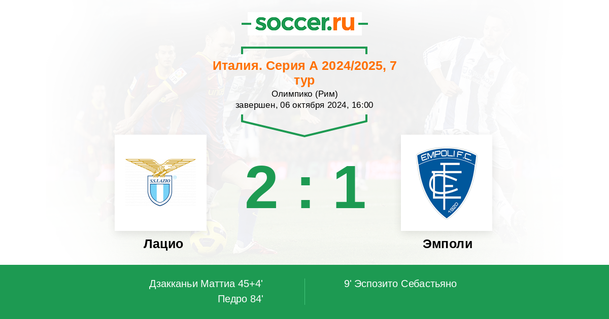 Запасные: 77 Марушич Адам (с 38'), 9 Педро (с 73'), 3 Пеллегрини Лука (с 86'), 22 Кастровилли Гаэтано (с 86'), 14 Нослин Тианни (с 87'), 35 Мандас Христос, 7 Деле Баширу Фисайо, 20 Чауна Лоум, 2 Жиго Самуэль, 4 Габаррон Патрик Хиль, 55 Фурланетто Алессио