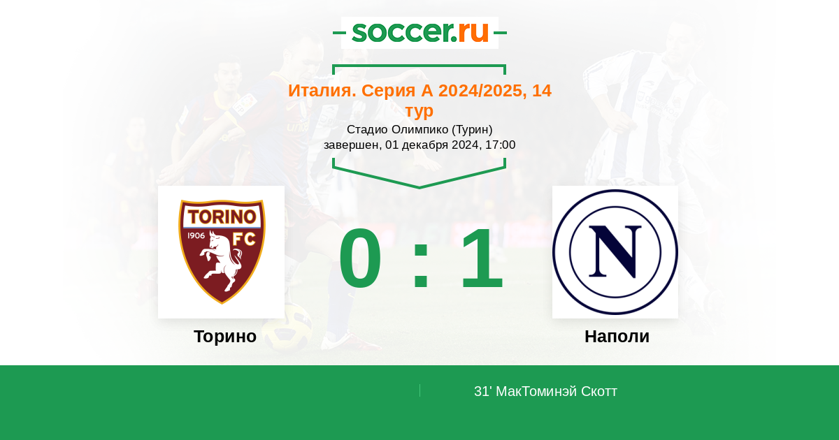 31' (0:1) МакТоминэй Скотт (8) (Кварацхелия Хвича (77))