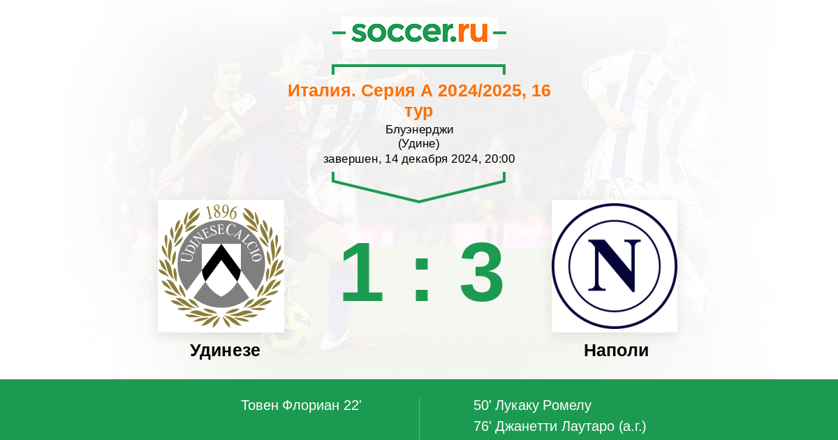 76' (1:2) Автогол Джанетти Лаутаро (30)