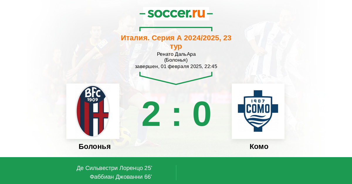 25' (1:0) Де Сильвестри Лоренцо (29) (Ликояннис Хараламбос (22))