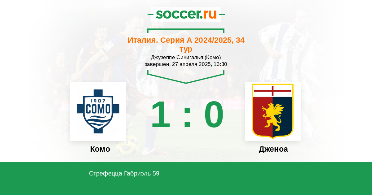 59' (1:0) Стрефецца Габриэль (7) (Кутроне Патрик (10))