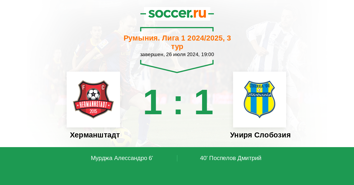40' (1:1) Поспелов Дмитрий (60) (Шербаница Даниэль (29))